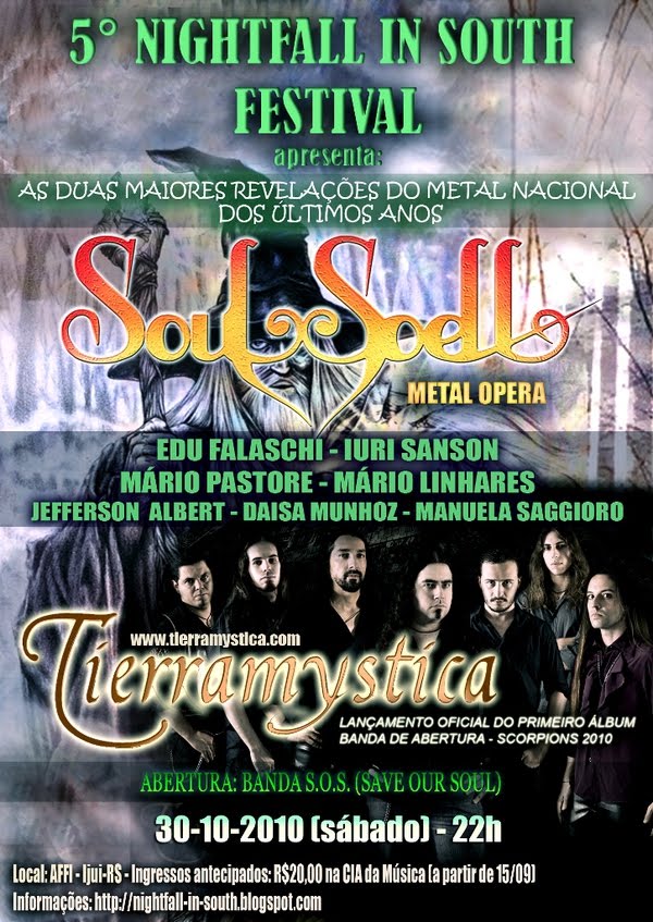 Edu Falaschi continues the "Labyrinth Tour" in Brazil with Soulspell Metal Opera and plays today at Affi venue in Ijuí / RS (Brazil) from 10 pm (Brazilian time) ! For more news : Soulspell Metal Opera Official Website